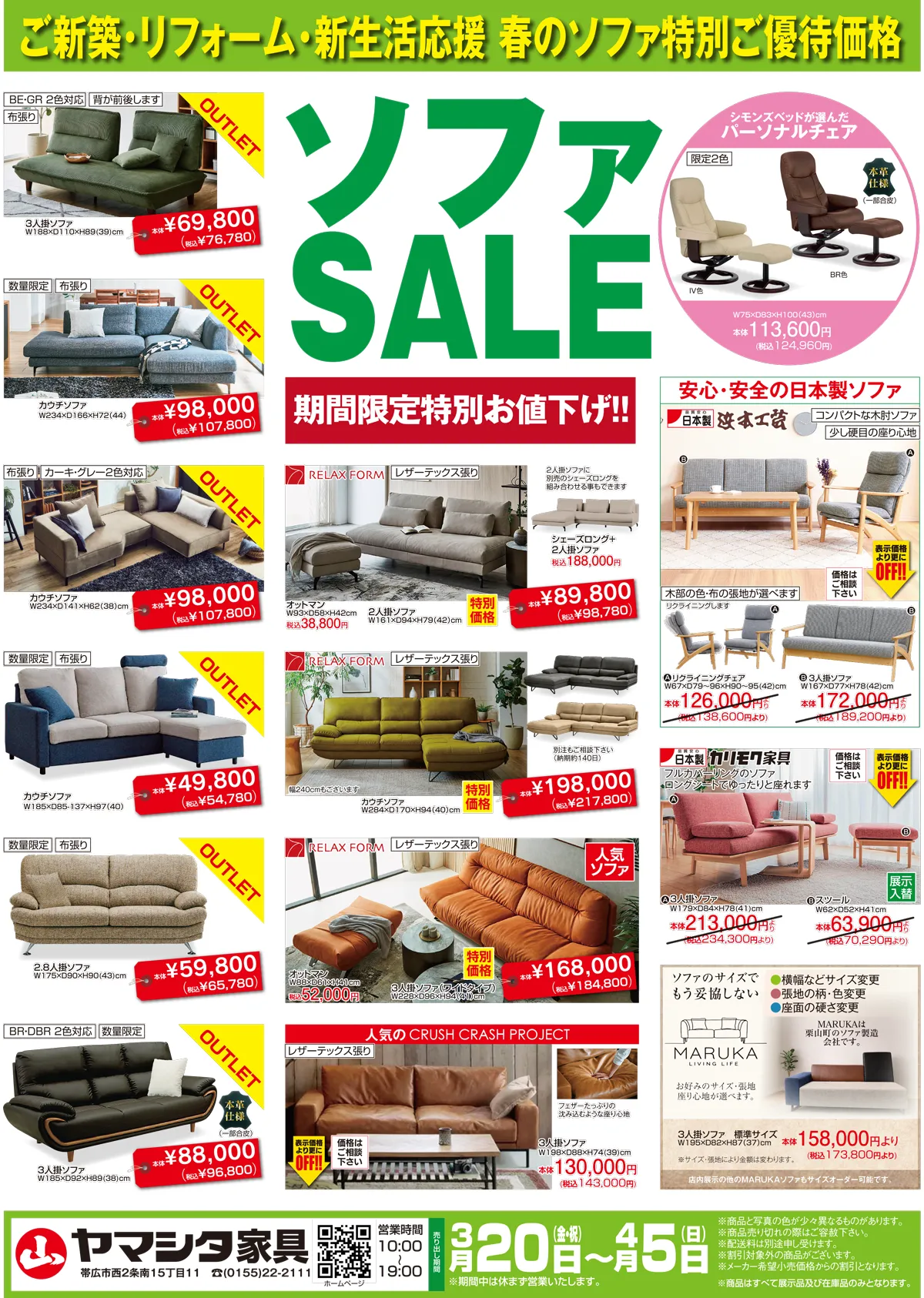 【3月20日(金・祝)〜4月5日(日)】ソファSALE