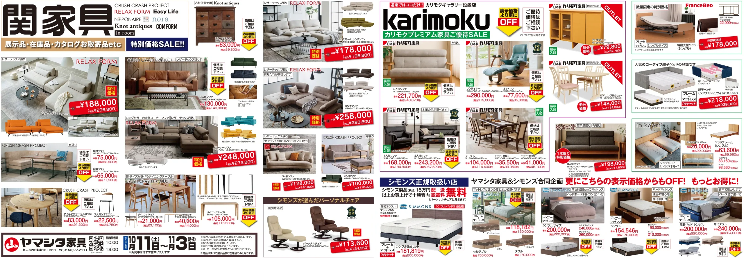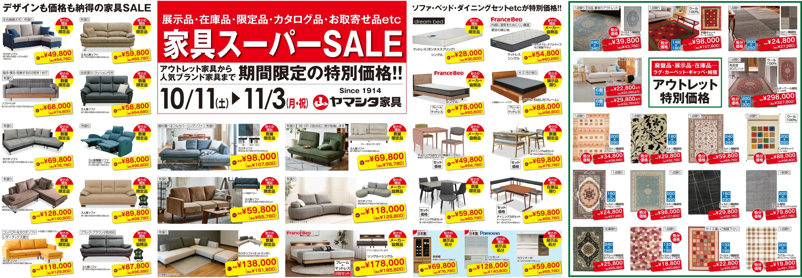 10月11日(土)~11月3日(月・祝)で家具スーパーSALEを実施します。